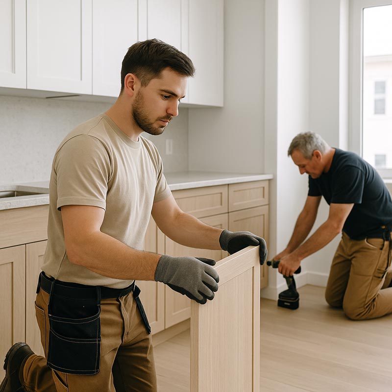 Yes. We offer cabinet removal and disposal services before installation. This includes detaching the old units, safely removing them, and preparing the space for new cabinets.